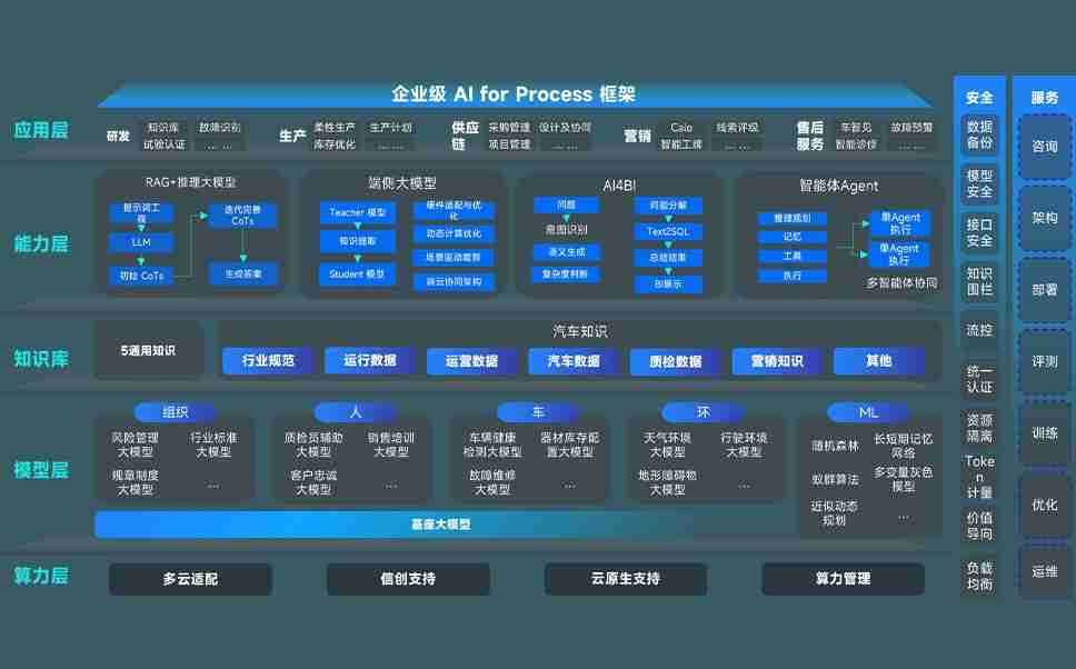 端到端的一站式AI工作空间深度融合了从企业战略规划到日常经营的全流程业务板块,,,定向解决车企内部领域多、、、、部门多、、、、链条长、、、场景碎片化等难题,,,,支持车企快速构建以AI为核心的生产力写作体系,,,实现任务执行与AI能力的无缝集成与交互