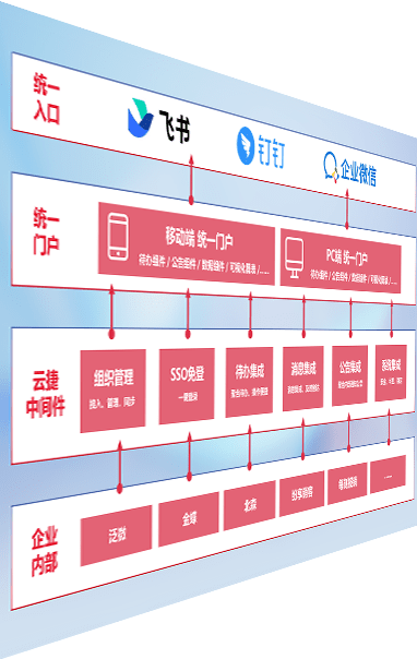 对协作平台提供支持服务,,,支持企业应用与协作平台对接,,,,包含组织同步、、消息集成、、、、待办集成等。。支持目前主流的协作平台:钉钉、、、、企微和飞书。。